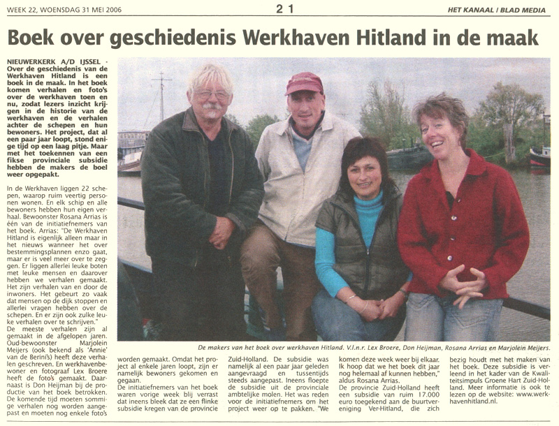 Veel besproken. Dick kan ieder moment klaar zijn met de verhalen. Dan snel lezen en kijken wat bruikbaar is, en waar eventueel nog foto-materiaal bij moet. Lex gaat toch nog wat situaties in de huidige vorm fotograferen om te kijken of een voor- en na-tje wellicht leuk is. Ook nog oproep doen voor oude foto's van de schepen waarvan de huidige eigenaren zijn geïnterviewd. Zaterdag a.s. heeft Aad een kraam gehuurd op de Capelse boekenmarkt om wellicht nog meer foto's en verhalen van langslopers te krijgen. Kortom de vaart zit er goed in.