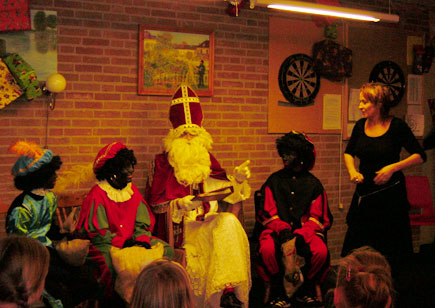 Ondertussen was ook de Sint gesignaleerd de haven. Alwaar hij na zich te hebben opgefrist aan boord bij Anton, Ria en Daan acte de présence zou geven in het buurthuis.