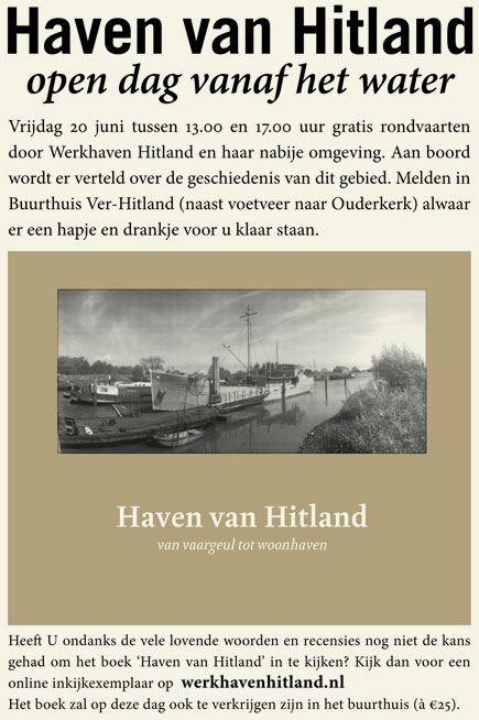Eindelijk was het dan zover, na een eigen boek nu ook een heus bord aan de dijk en zelfs een open dag. Oftewel: Mission completed. Werkhaven Hitland staat op de kaart. Het was een leuke dag, met non-stop rondvaarten door de werkhaven en omgeving. Niet heel druk, maar wel erg gezellig. En muzikaal was het ook helemaal top: Marjolein speelde met Jacqueline en Gèrard fantastische zigeunermuziek vanuit hun hart.
