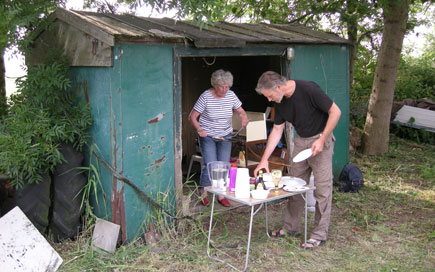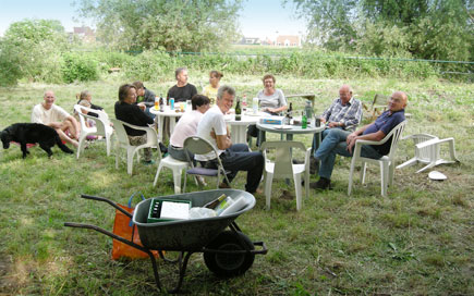 Vanmiddag was er op het landje bij de parkeerplaats een pannenkoekenhavenborrel, alwaar tante Corrie onder toeziend oog van Mr. D.J. van der Las een recordaantal pannenkoeken probeerde te bakken. Het Hitlands record is verbroken en lekker, dat waren ze!