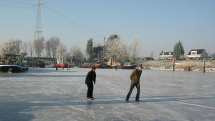 En zo gebeurde het, na 12 jaar gaf IJsmeester Johan vanmorgen vroeg het ijs in Werkhaven Hitland eindelijk weer vrij. Hoe dik het precies was wist hij niet (geen zin om naar zijn boor in de bus te lopen), maar dik genoeg om veilig op te schaatsen. De Hitlandse Elfschepentocht werd zo een feit. En hoewel Jim de grootste trukendoos bezat, was qua stijl en snelheid Teun (67 jaar!) nog steeds Heer en Meester op het ijs.